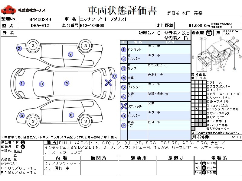 フル装備 / CD / 集中ドアロック / エアバッグ / 助手席エアバッグ / ABS / トラクションコントロール / カーナビゲーション(インダッシュ,SSD,2DIN) / 地デジTV / バックカメラ(フロント) / アルミホイール(15インチ) / ハーフレザーシート / スマートキー / ハイマウントストップランプ /
