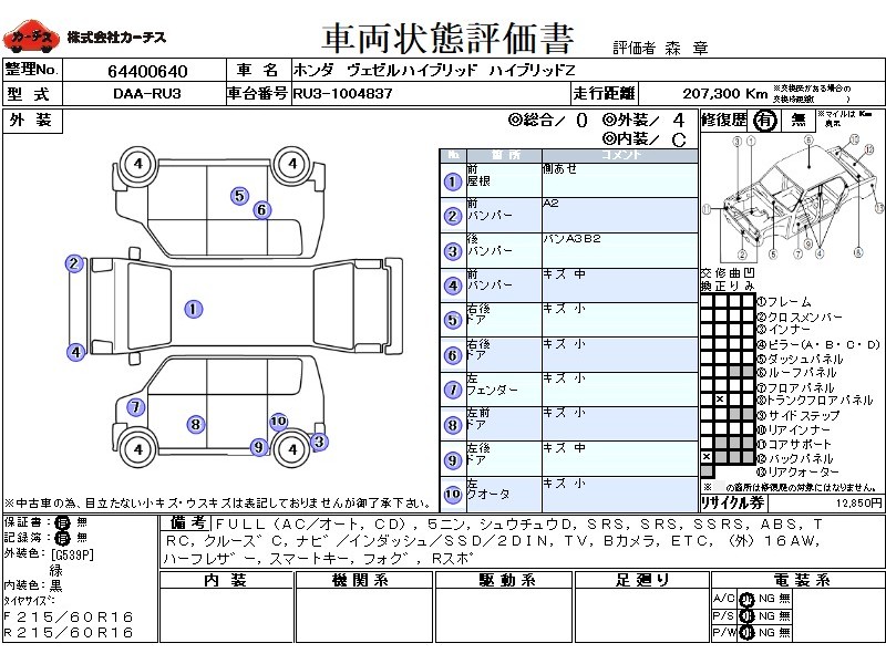 フル装備 / CD / 乗車定員(5人) / 集中ドアロック / エアバッグ / 助手席エアバッグ / サイドエアバッグ / ABS / トラクションコントロール / クルーズコントロール / カーナビゲーション(インダッシュ,SSD,2DIN) / テレビ(アナログ) / バックカメラ / ETC / アルミホイール(社外)(16インチ) / ハーフレザーシート / スマートキー / フォグランプ / リアスポイラー /