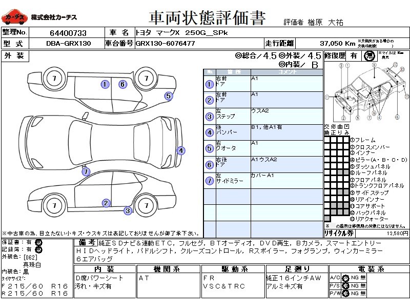 フル装備 / CD / エアバッグ / 助手席エアバッグ / サイドエアバッグ / ABS / トラクションコントロール / クルーズコントロール / カーナビゲーション(インダッシュ,2DIN) / 地デジTV / バックカメラ / ETC / アルミホイール(16インチ) / スマートキー / ディスチャージ / ウインカーミラー / フォグランプ / リアスポイラー /