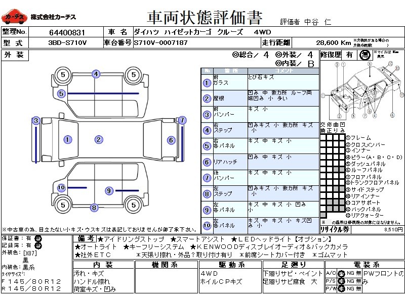 フル装備 / CD(社外) / 乗車定員(4人) / 集中ドアロック / エアバッグ / 助手席エアバッグ / ABS / トラクションコントロール / ETC(社外) / スマートキー / ハイマウントストップランプ / フォグランプ /