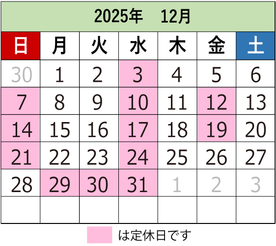 定休日:定休日カレンダーをご覧ください